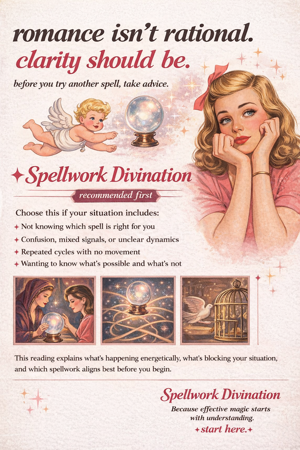 I’m Juliette. I’m a spellcaster working from a mix of African-rooted practices and Italian folk magic. My work is intentional and structured, not chaotic or impulsive. I focus on white magic meant to bring clarity, protection, alignment, and movement, not harm or control for the sake of ego.